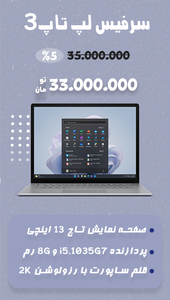سرفیس لپ تاپ 3 نقره ای Surface Laptop3-13 i5/8/256